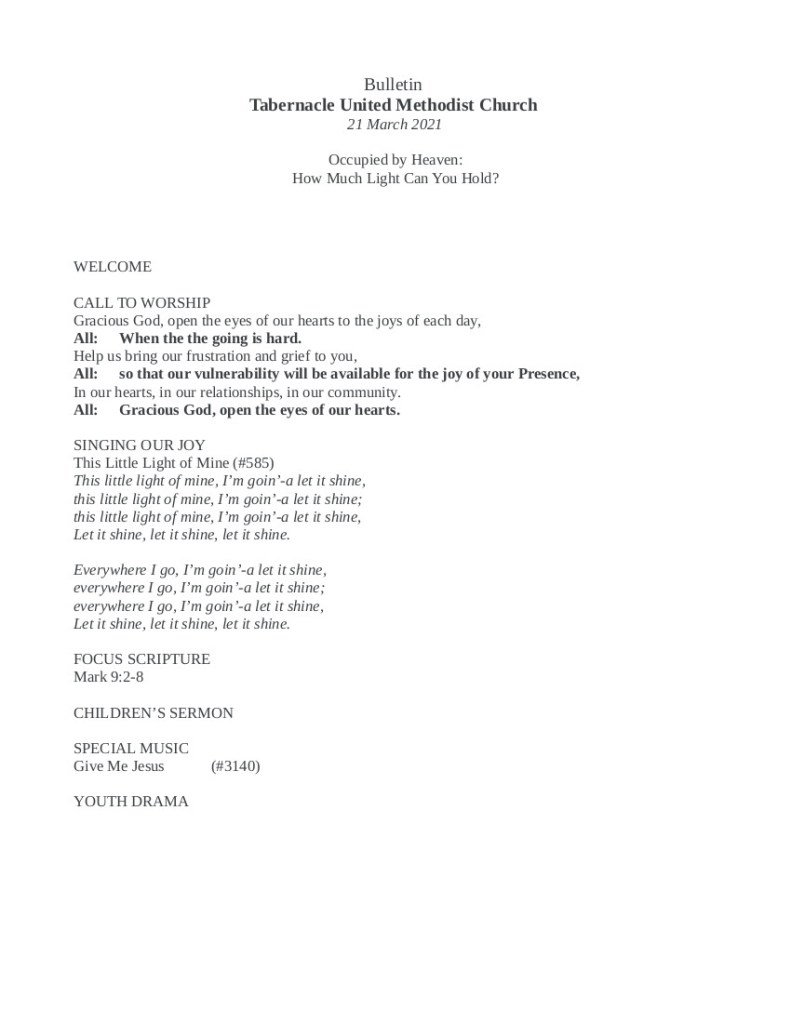 March 21 Bulletin Bulletin-3-21-2021Download Worship-Audio-3-21-2021-Part-iDownload Worship-Audio-3-21-2021-Part-iiDownload Share this: Click to share on X (Opens in new window) X Click to share on Facebook (Opens in new window) Facebook Like Loading...